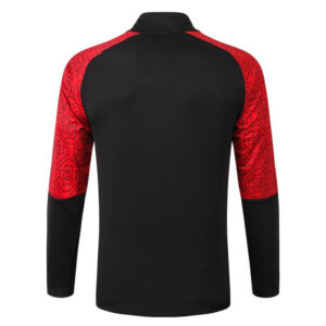 - Presenta el tradicional patrón de franjas verticales rojas y negras, símbolo del Milan desde sus inicios.